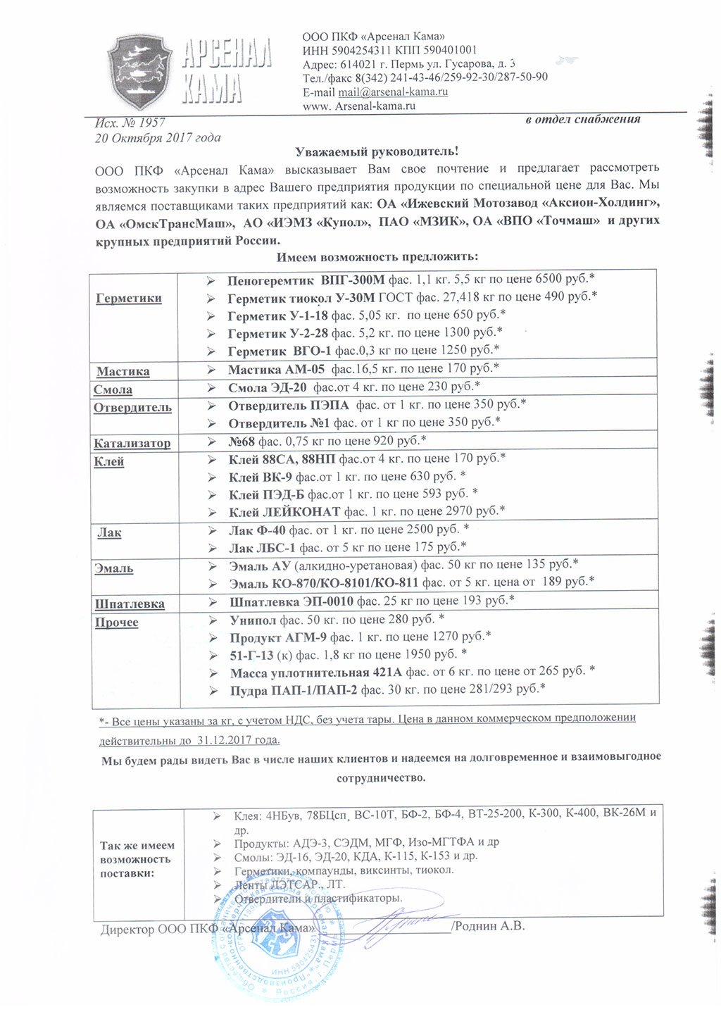 *- Все цены указаны за кг, с учетом НДС, без учета тары. Цены в данном коммерческом предложении действительны дл 31.12.2017 года